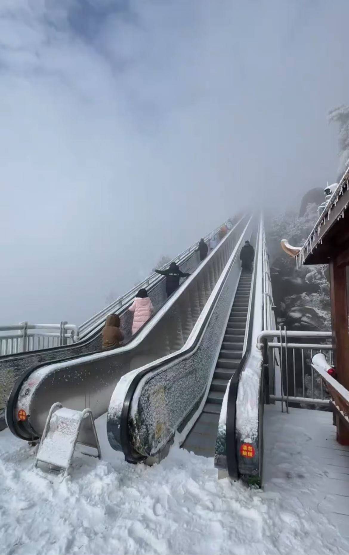 1月21日,一些旅客在酬酢平台晒出上饶灵山的雪景图和视频,本日有雾,乘坐电梯上山,仿若过问瑶池。22日,又名旅客告诉记者,电梯有10段,耗时20多分钟。又名上饶土产货旅客暗示,她去过灵山好屡次,此次是专程看雪,莫得作念攻略,“乘坐缆车电梯,玩玩雪就走”。
